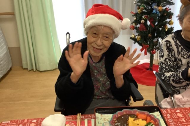 1階(12月14日)、2階(12月15日)にクリスマス会を開きました。 クリスマスらしい洋風のお食事