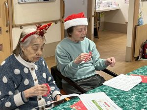 1階ではクリスマスソングを歌い、2階はビンゴゲームを楽しみました♬