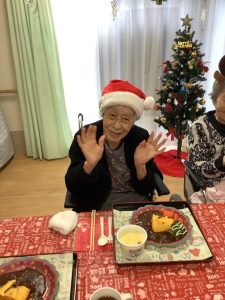 クリスマスらしい洋風のお食事とケーキを召し上がっていただきました。